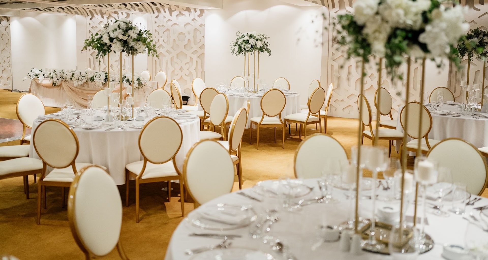 • Cvetni aranžman od svežeg cveća za svaki sto i Tiffany stolice